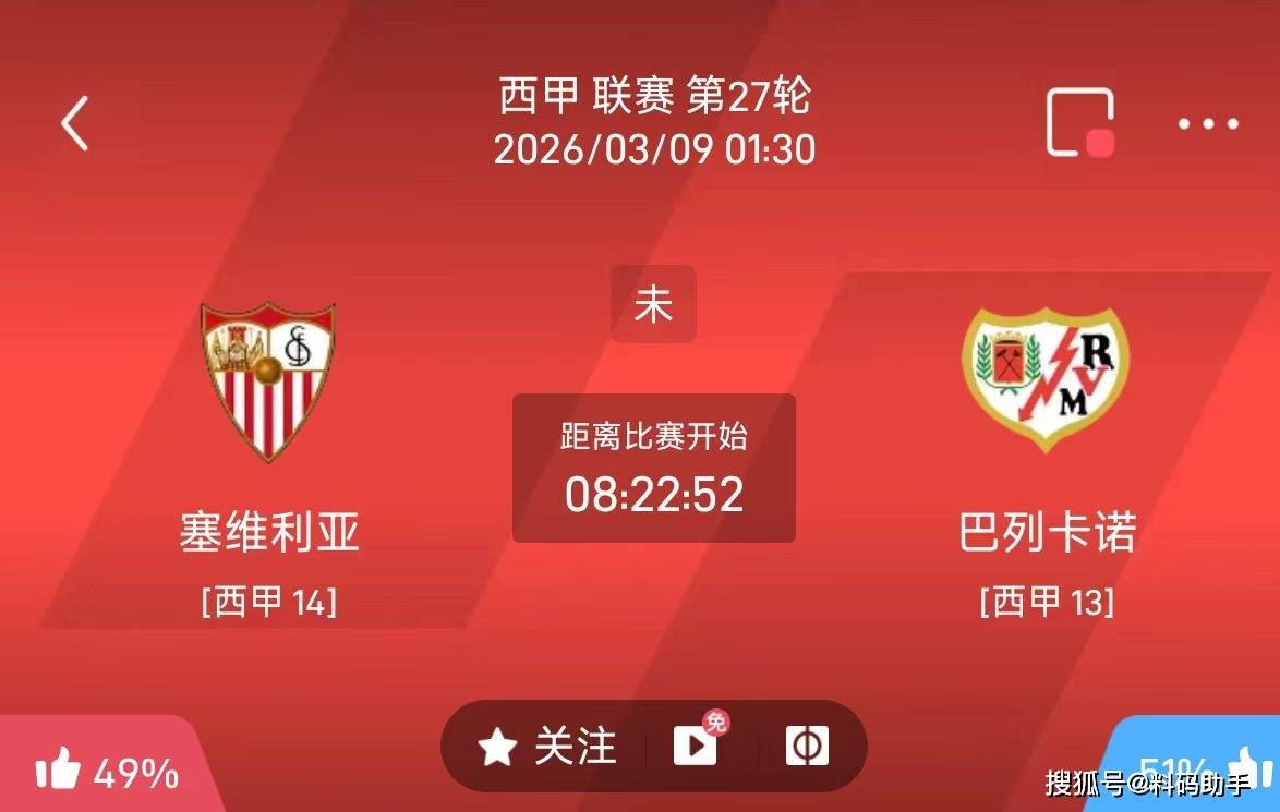 今日足球推荐:3/8 1点30西甲 塞维利亚VS巴列卡诺